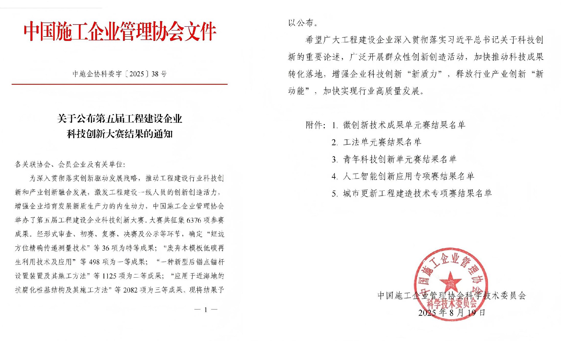 • 2025-08-27 集團在第五屆全國工程建設企業科技創新大賽中斬···